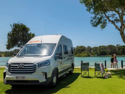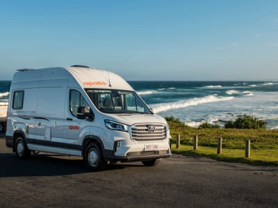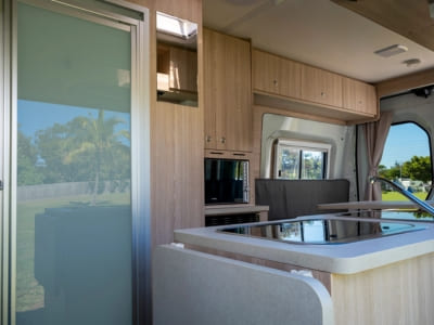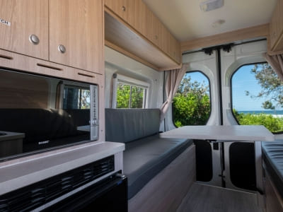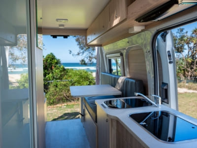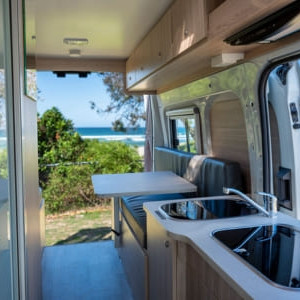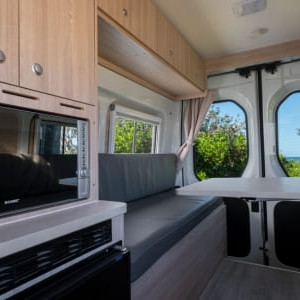 The Hitop is the smallest camper in the Apollo range, designed with a couple in mind. Featuring a double bed in the rear and equipped with gas stove, fridge and microwave, this camper is all you need to tour around with ease.