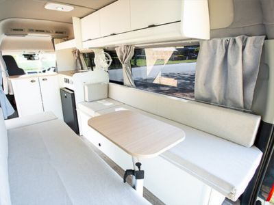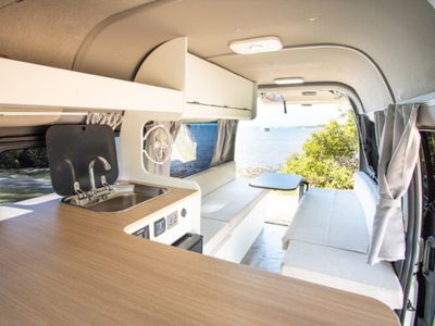 With a clever interior layout that maximizes every inch of space, this vehicle has comfortable seats and sleeps up to three adults. It is an ideal choice for couples, small groups, or friends who value a flexible and adventure-ready vehicle that remains simple to operate without sacrificing the convenience of a modern fit-out.