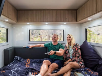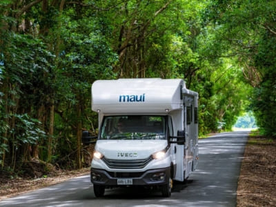Your campervan hire is complete with apartment styled kitchen utensils and fresh white linen, just like what you’d expect to find in a hotel, but in Maui motorhome.