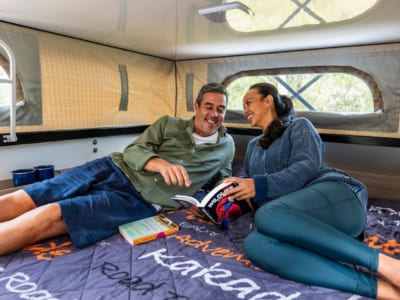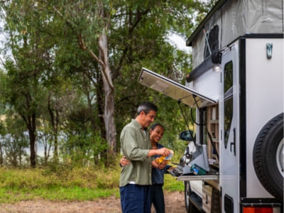 Escape the crowds and hit the road in our tough 4WD camper—perfect for backpackers chasing freedom and fresh air. Designed for two, it features a cozy queen-size bed inside and a pop-top roof that adds extra room to relax or hang out. Cook up meals outdoors with a user-friendly external kitchen set beneath a roll-out awning, complete with a fridge, collapsible sink, portable stove, and a cold outdoor shower—ideal after a hike or surf. Built to handle the wild, this 4WD is your go-anywhere, live-large adventure rig.
