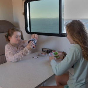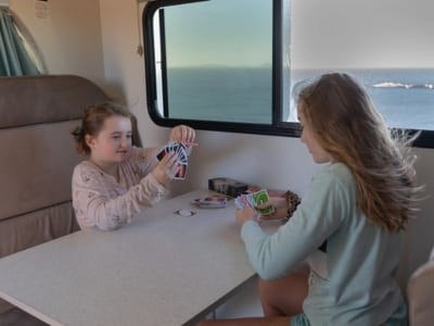 Sleep 2 above the driver’s cab and/or change the back from a dining area into a double bed by piecing together the jigsaw puzzle.
