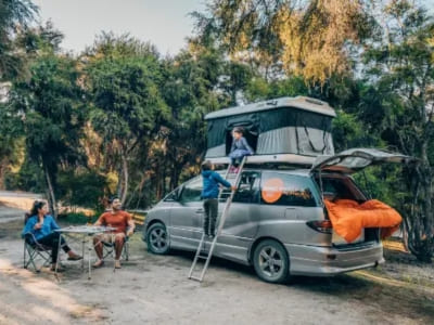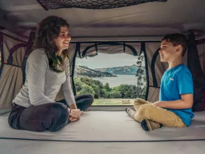 The Beta 4-berth is a Beta campervan with a James Baroud rooftop tent on it. It can seat & sleep up to 4 people. Share the costs of travel with mates or make it a super-romantic road trip. The view from the top is amazing. It’s like having a penthouse on your campervan.