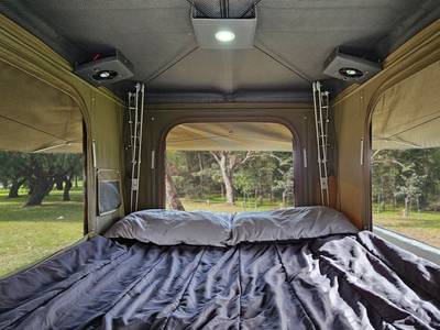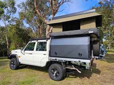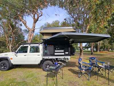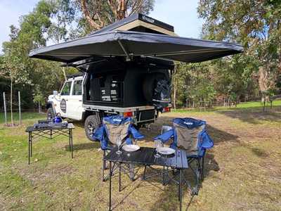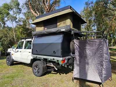 A rugged Toyota LandCruiser built for adventure, this 2-berth 4WD comes fully equipped with a rooftop tent, awning, and outdoor shower—perfect for comfortable off-grid travel and exploring anywhere the road (or track) takes you.